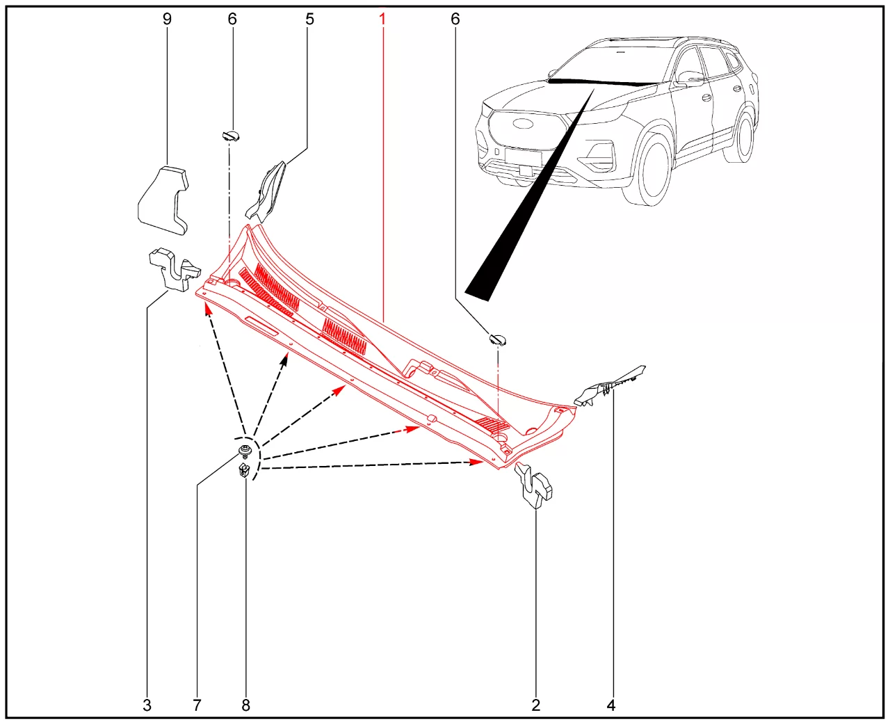 Штатный оригинальная накладка нижняя лобового стекла t19/t18/t19/t1a/t1e для XCITE X-Cross 7, Chery Tiggo 7 Pro, XCITE X-Cross 8, Chery Tiggo 8 Pro