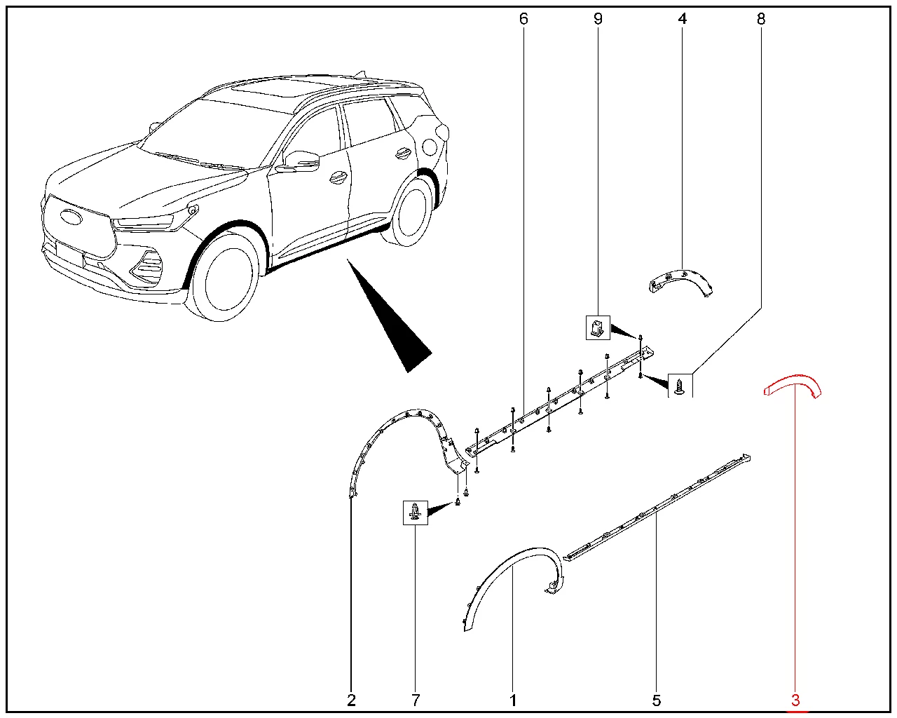 Штатная оригинальная накладка арки заднего колеса для XCITE X-Cross 7, Chery Tiggo 7 Pro.
