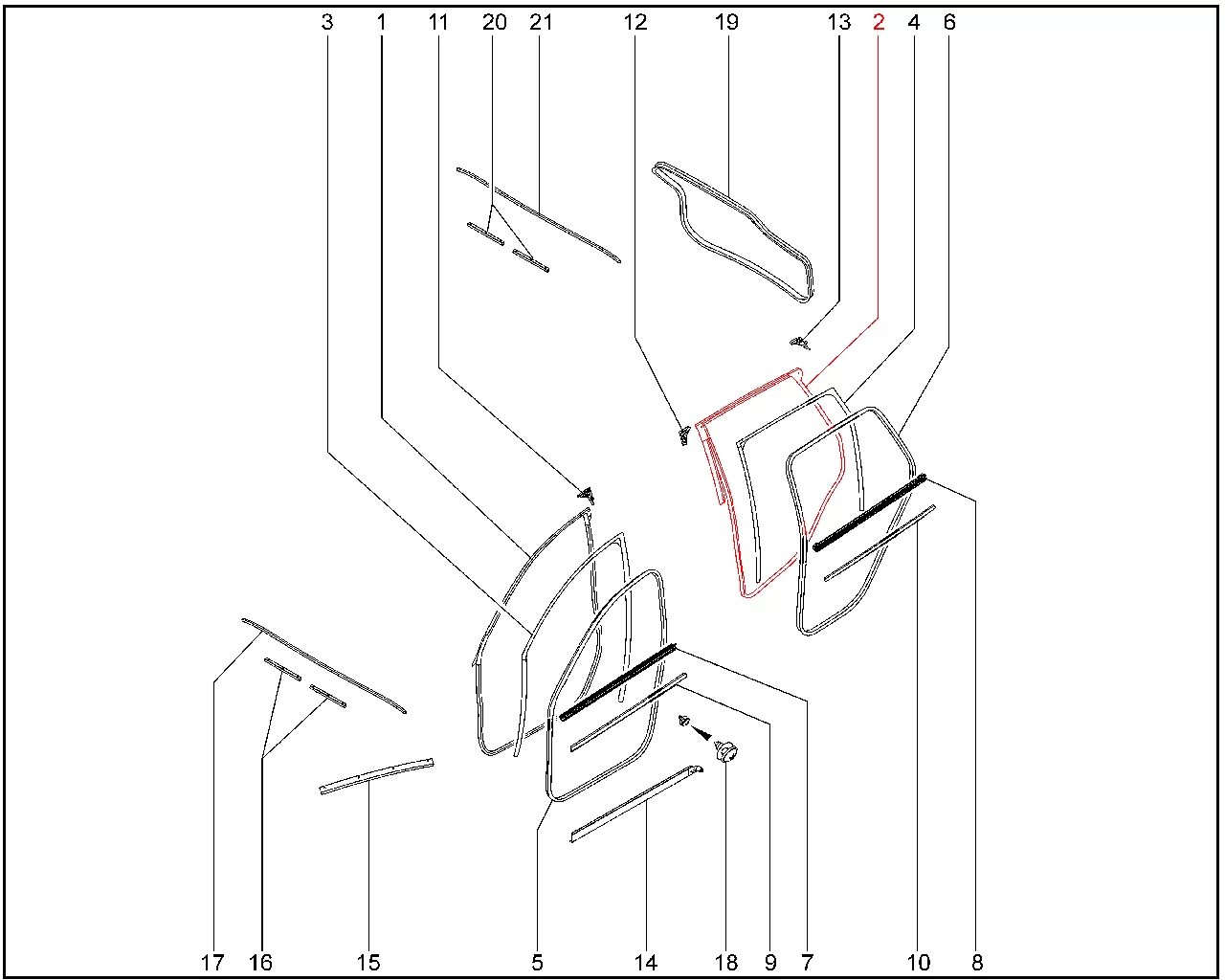 Штатный оригинальный уплотнитель проёма задней двери для XCITE X-Cross 7, Chery Tiggo 7 Pro.
