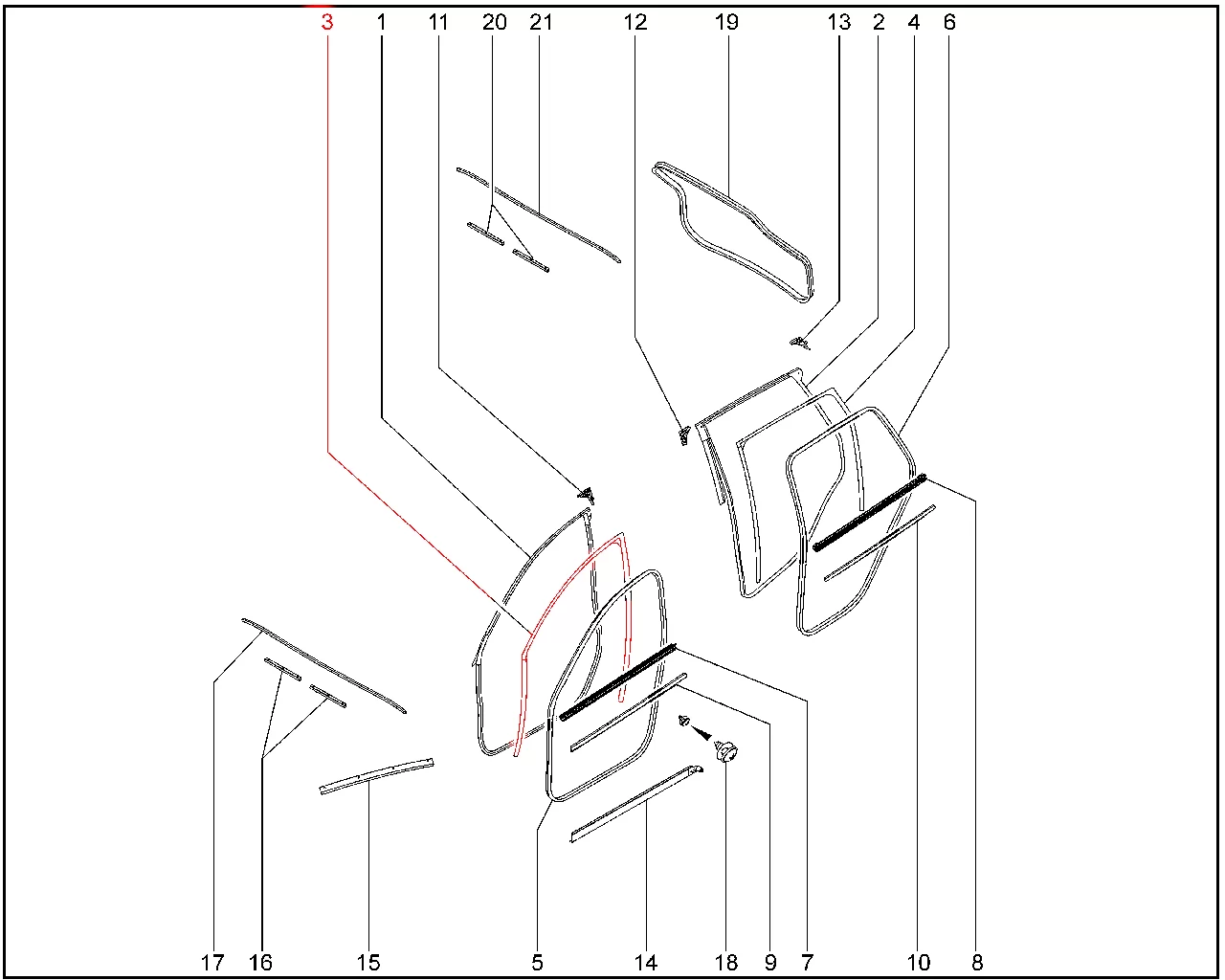 Штатный оригинальный уплотнитель опускного стекла передней двери верхний для XCITE X-Cross 7, Chery Tiggo 7 Pro.
