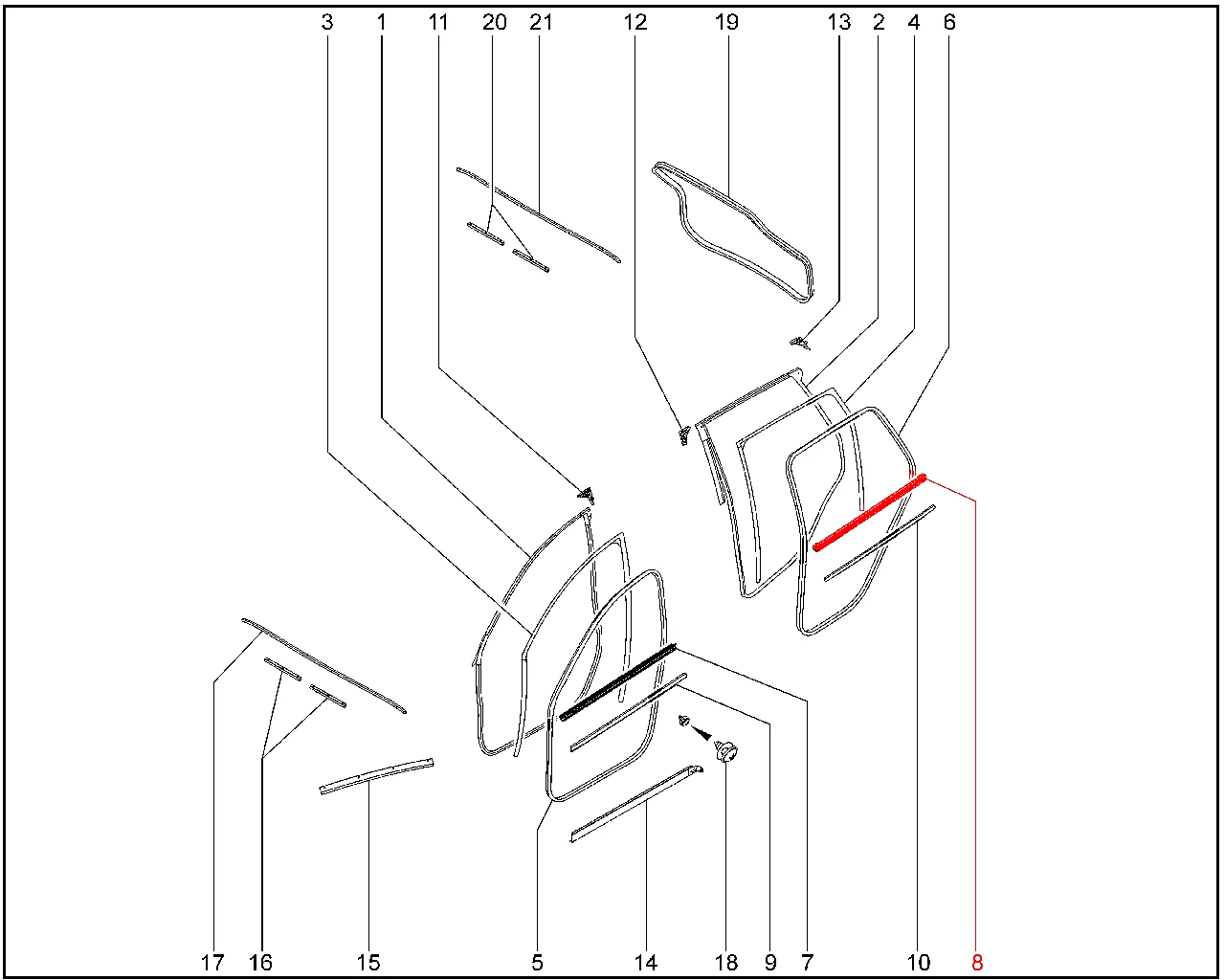 Штатный оригинальный уплотнитель опускного стекла задней двери горизонтальный внутренний для XCITE X-Cross 7, Chery Tiggo 7 Pro.