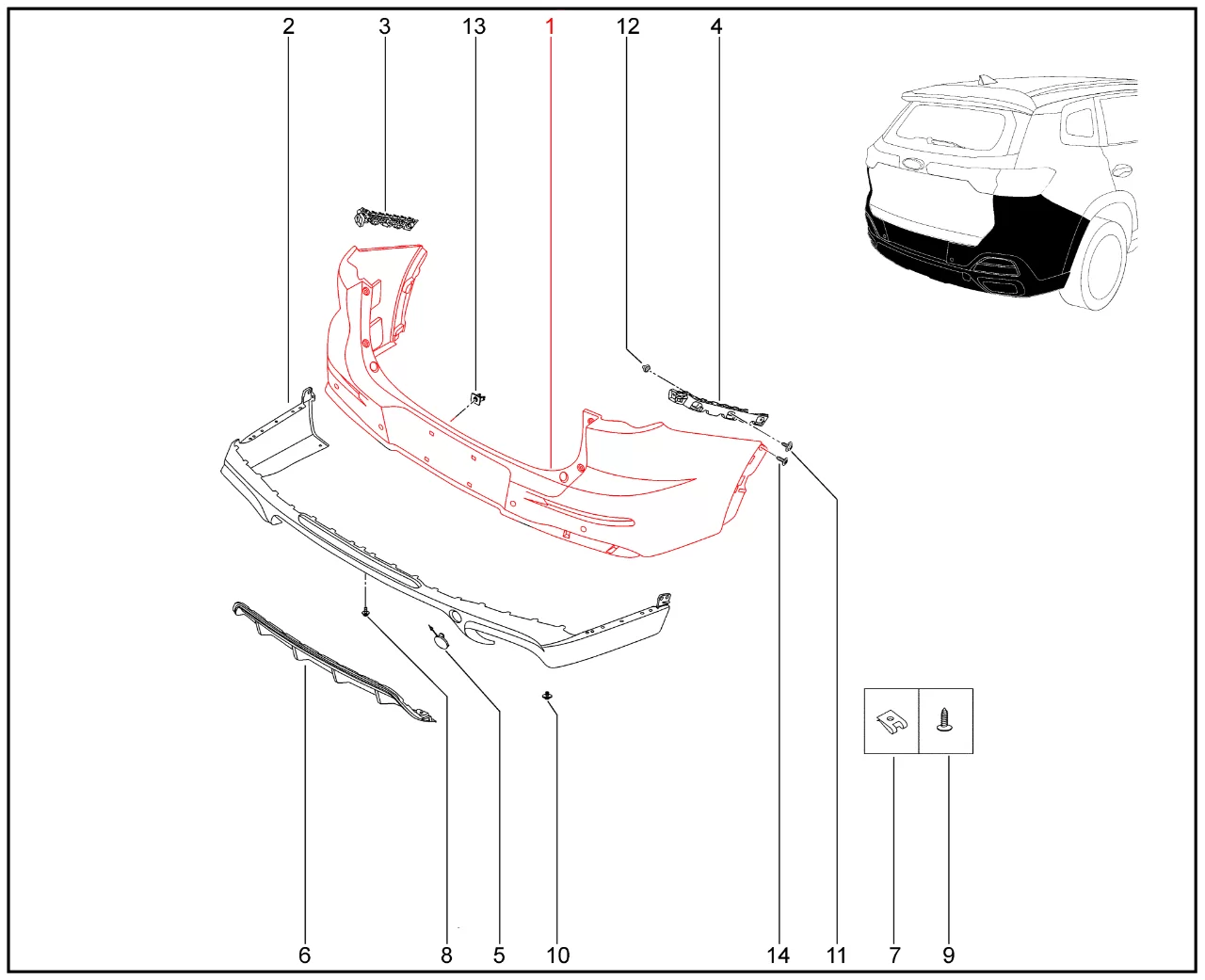 Штатный оригинальный бампер задний (верхняя часть) для XCITE X-Cross 8, Chery Tiggo 8 Pro.
