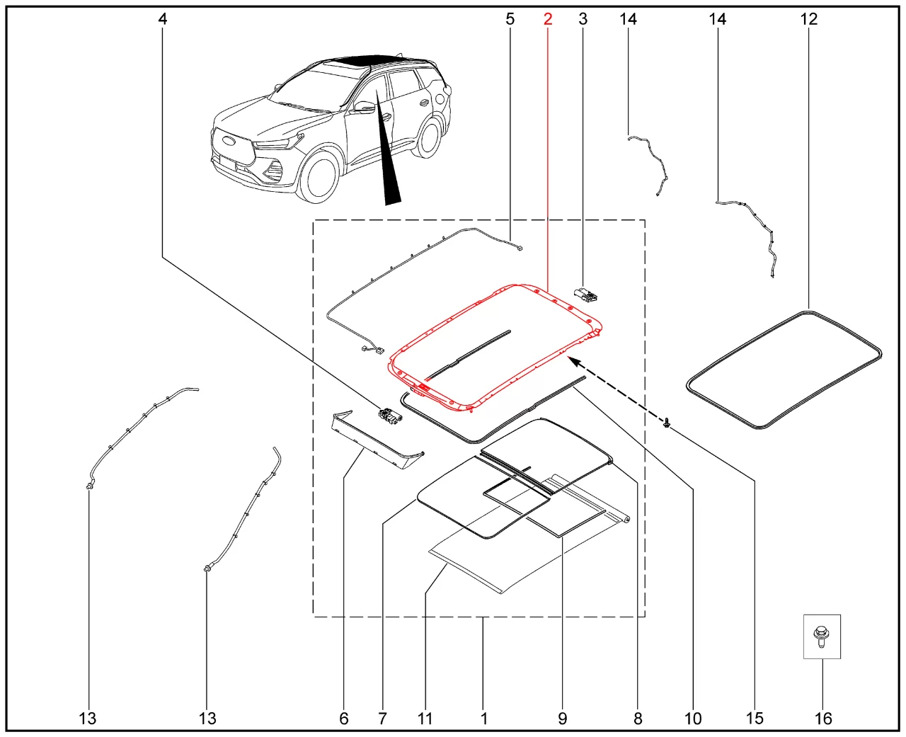 Штатная оригинальная рама люка крыши T1D/T1E для XCITE X-Cross 7, Chery Tiggo 7 Pro, XCITE X-Cross 8, Chery Tiggo 8 Pro.