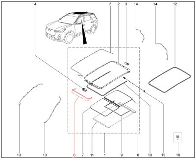 Штатная оригинальная шторка люка крыши T1E/T1D для XCITE X-Cross 7, Chery Tiggo 7 Pro, XCITE X-Cross 8, Chery Tiggo 8 Pro.