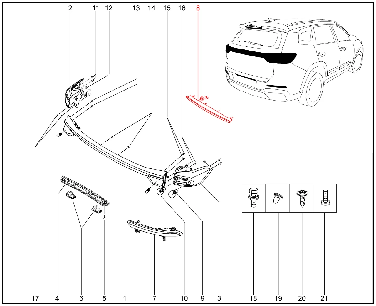 Штатный оригинальный сигнал торможения дополнительный для XCITE X-Cross 8, Chery Tiggo 8 Pro.