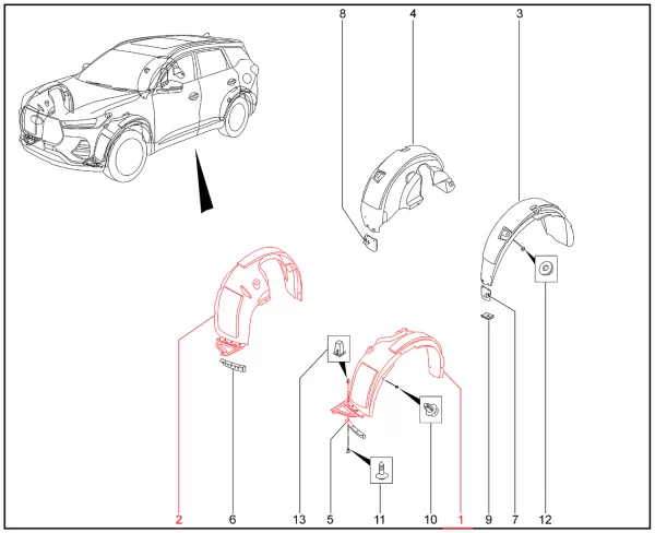 Штатный оригинальный подкрылок переднего колеса XCITE X-Cross 7, Chery Tiggo 7 Pro.