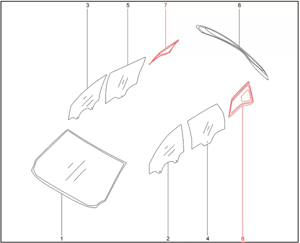 Штатное оригинальное стекло окна боковины для XCITE X-Cross 7, Chery Tiggo 7 Pro.