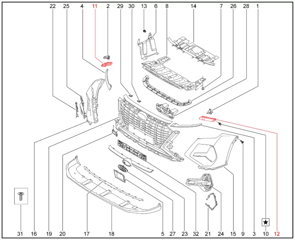 Штатный оригинальный кронштейн крепления переднего бампера для XCITE X-Cross 8, Chery Tiggo 8 Pro.