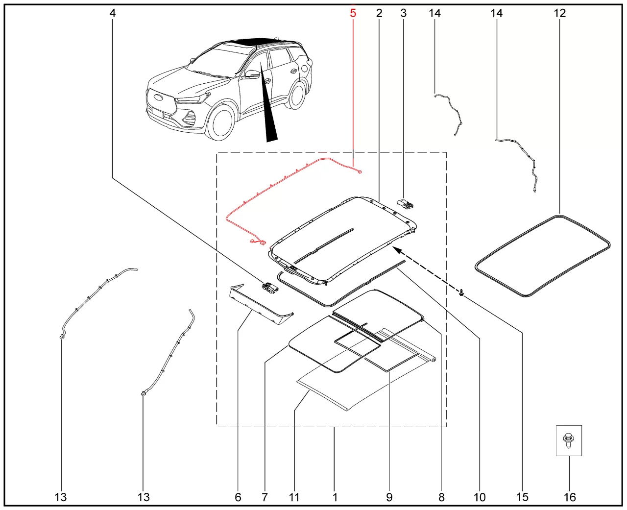 Штатный оригинальный жгут проводов крыши T1D/T1E/T18 для XCITE X-Cross 7, Chery Tiggo 7 Pro, XCITE X-Cross 8, Chery Tiggo 8 Pro.