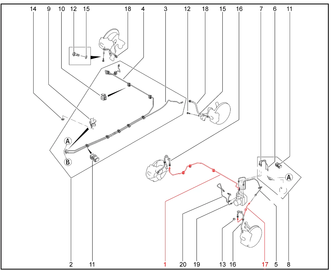 Штатная оригинальная трубка к переднему тормозу в сборе для XCITE X-Cross 7, Chery Tiggo 7 Pro.