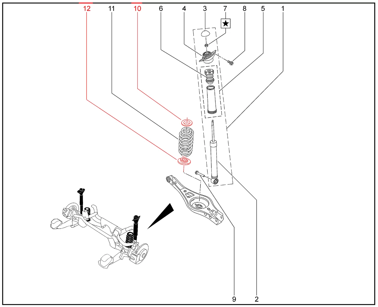 Штатная оригинальная прокладка изолирующая пружины задней подвески для XCITE X-Cross 7, Chery Tiggo 7 Pro, XCITE X-Cross 8, Chery Tiggo 8 Pro.