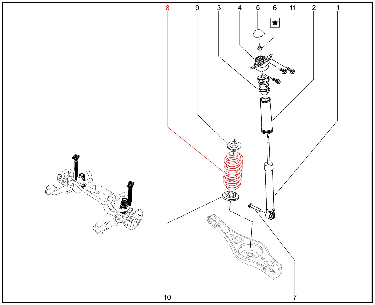 Штатная оригинальная пружина задней подвески для XCITE X-Cross 8, Chery Tiggo 8 Pro.