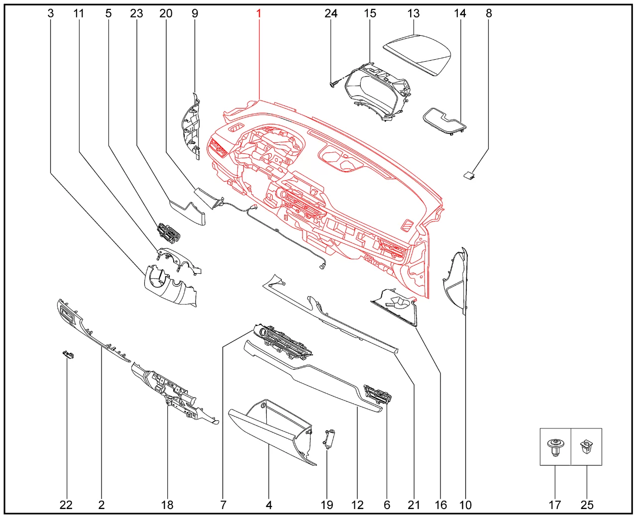 Штатная оригинальная торпедо / панель приборов (Prestige) для XCITE X-Cross 7, Chery Tiggo 7 Pro.