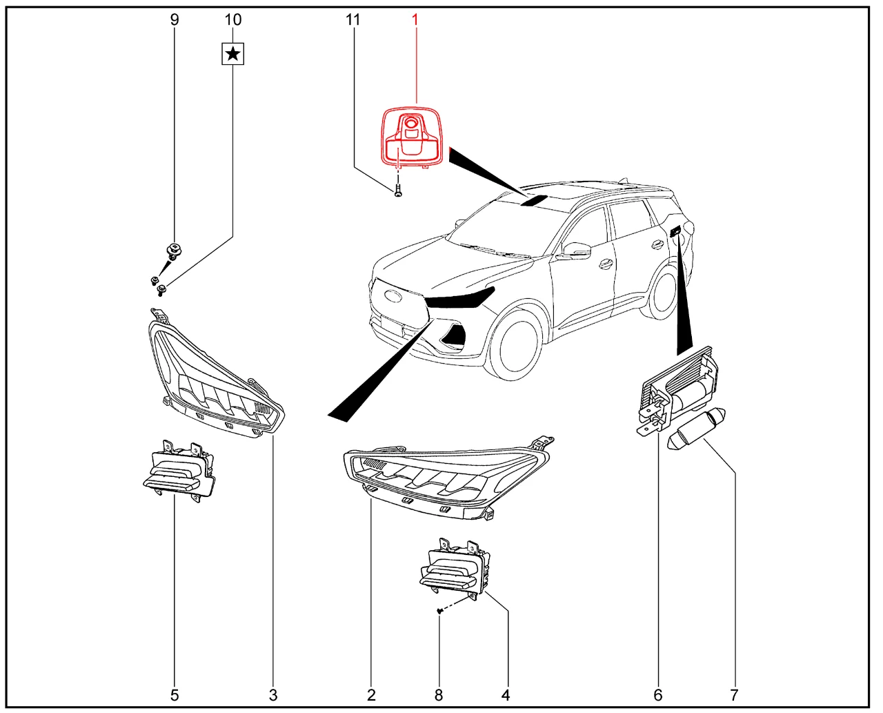 Штатный оригинальный блок освещения салона для XCITE X-Cross 7, Chery Tiggo 7 Pro, XCITE X-Cross 8, Chery Tiggo 8 Pro.