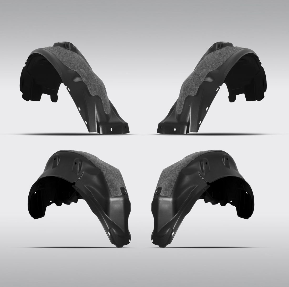 Подкрылки с шумоизоляцией для Лада Иксрей, точно повторяющие форму колесных арок, предназначены для защиты их от коррозии, ударов и различных химических веществ, а также для снижения шума в салоне автомобиля. Шумопоглощающая поверхность изготовлена из нетканого синтетического материала. Благодаря оригинальному крепежу, установка подкрылка не требует сверления кузова и повреждения лакокрасочного покрытия. Конструкция подкрылков гарантирует максимальную защиту колесной ниши от коррозии и любого механического воздействия. Имеют легкий вес, отталкивают влагу и предотвращают образование конденсата между подкрылком и колесной аркой. Морозостойкий пластик подкрылка предотвращает налипание снега внутри колесной арки, что обеспечивает должный уровень безопасности в сложных дорожных условиях.