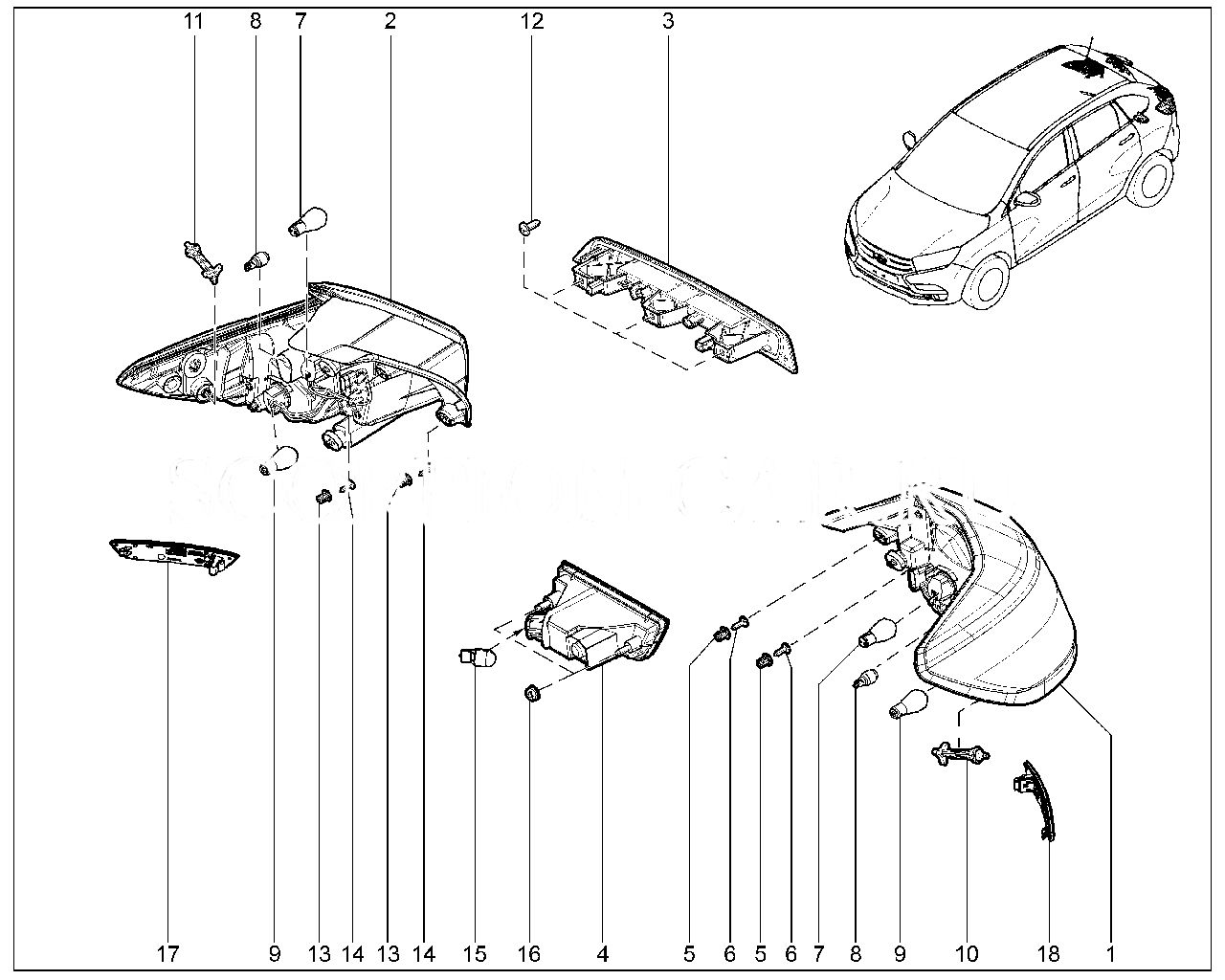 Штатный оригинальный задний фонарь для Лада Иксрей: