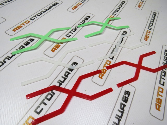 Наклейки приклеиваются на брызговики при помощи цианакрилатного клея (перед наклейкой рекомендуется зашкурить или слегка поцарапать место приклеивания для лучшего сцепления).