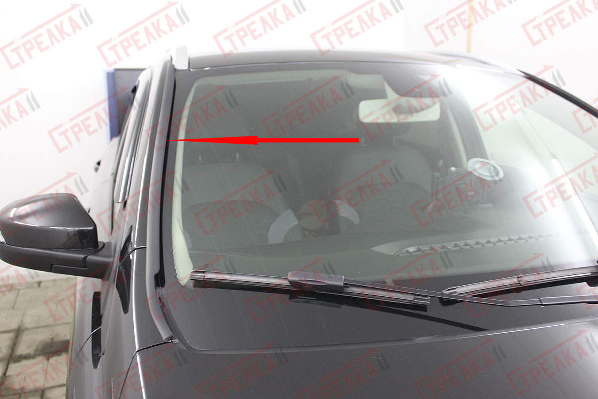 Устанавливается дефлектор на переднюю стойку автомобиля.