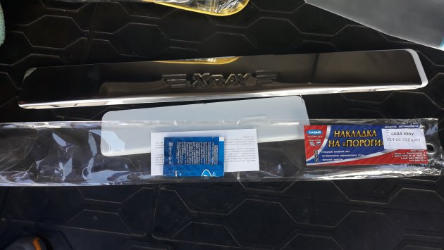 Накладки на пороги Лада Иксрей с тиснением "XRAY", комплект 4 шт, полированная нержавеющая сталь