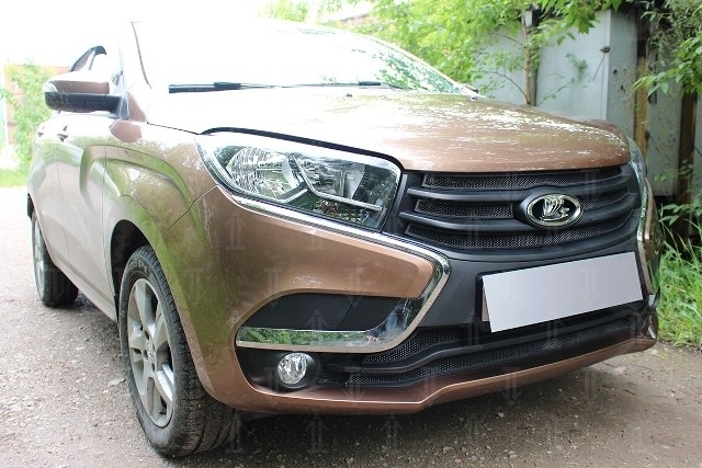 Верхняя защита радиатора из 4 частей для ЛАДА Иксрей изготовлена из алюминиевой сетки с размером ячейки 3*7 мм. Со стандартным, ромбовидным рисунком. Защищает радиатор автомобиля от попадания в него небольших камней, насекомых и прочего мелкого мусора, не препятствуя потокам воздуха (без ущерба для охлаждения двигателя).