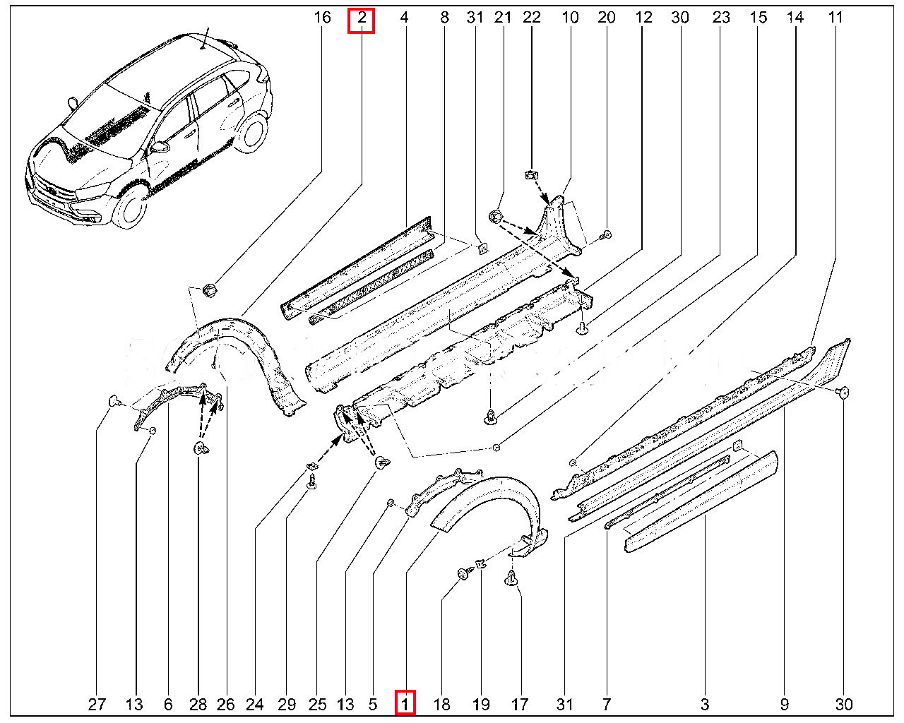 Молдинг переднего крыла в сборе для Лада Икрей Кросс.