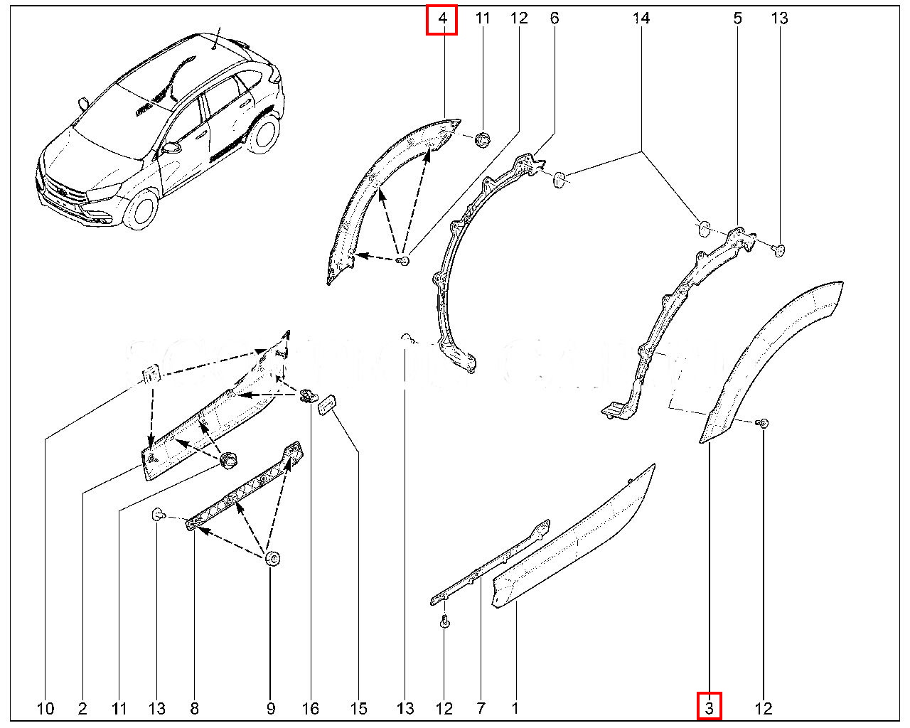 Молдинг задней арки (в сборе с клипсами и двухсторонней липкой лентой) для Лада Иксрей Кросс.