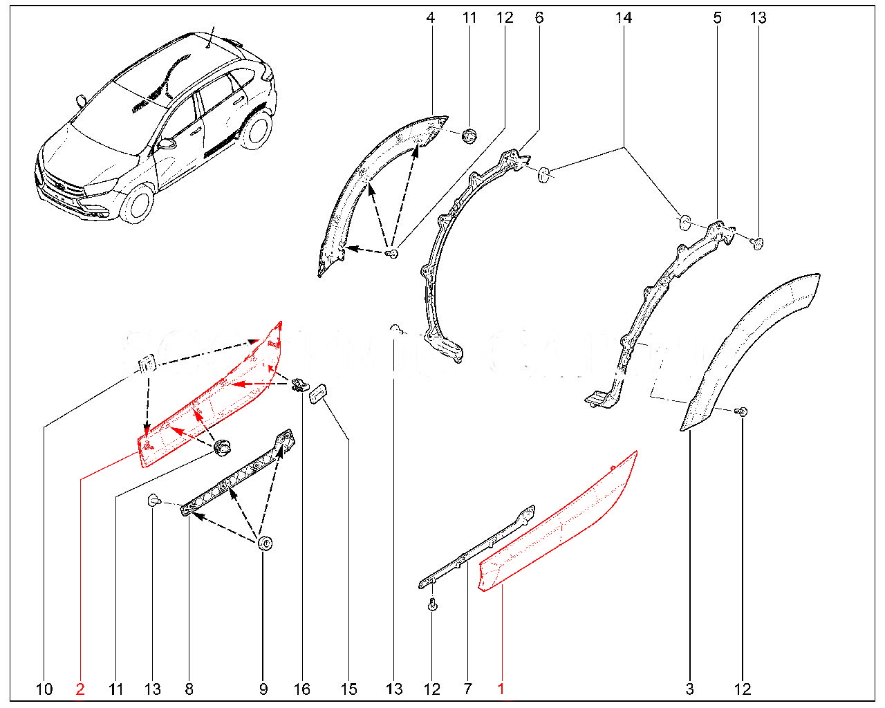 Молдинг задней двери (без клипс и двухсторонней липкой ленты) для Лада Иксрей Кросс.
