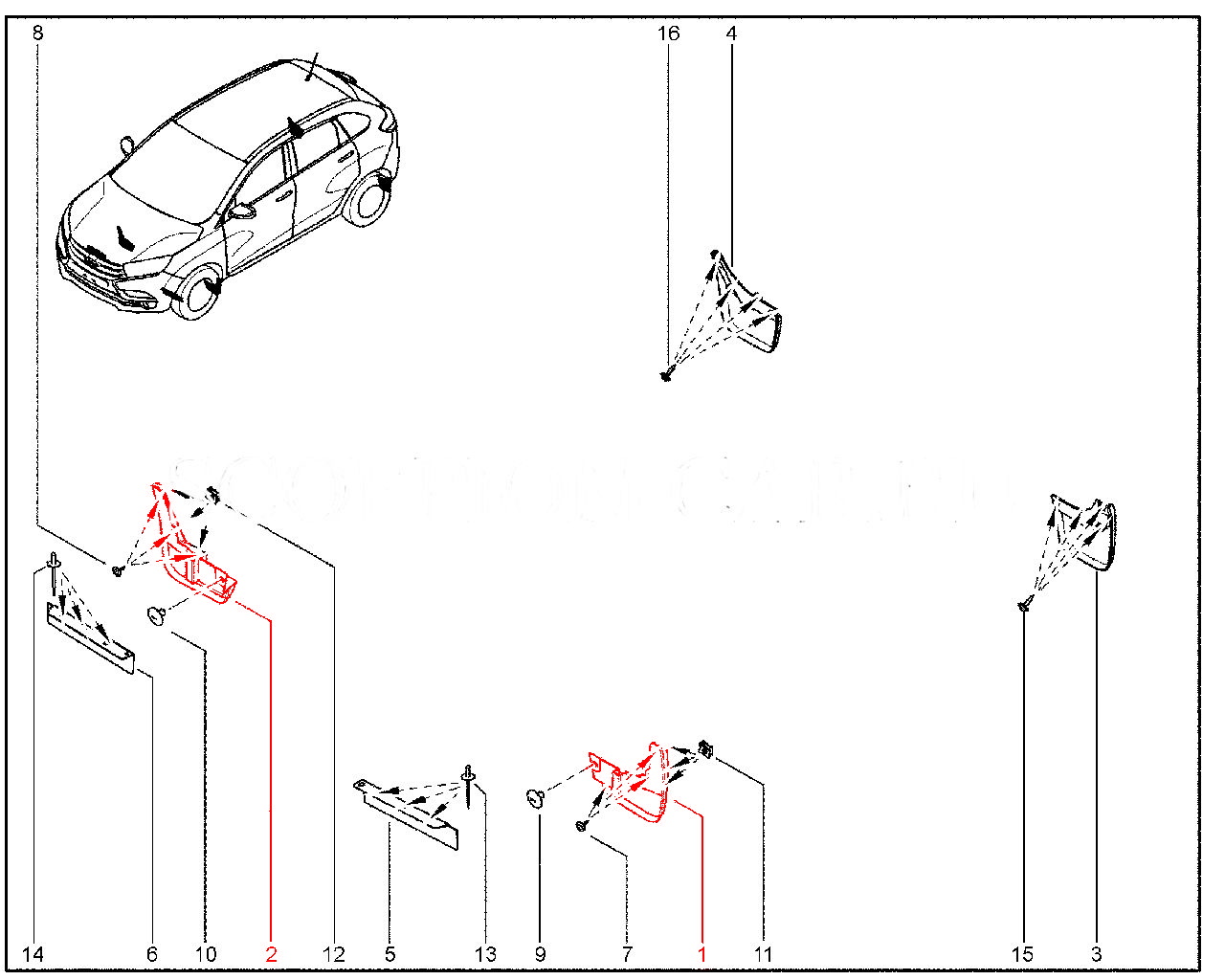 Штатные передние брызговики для Лада Иксрей.