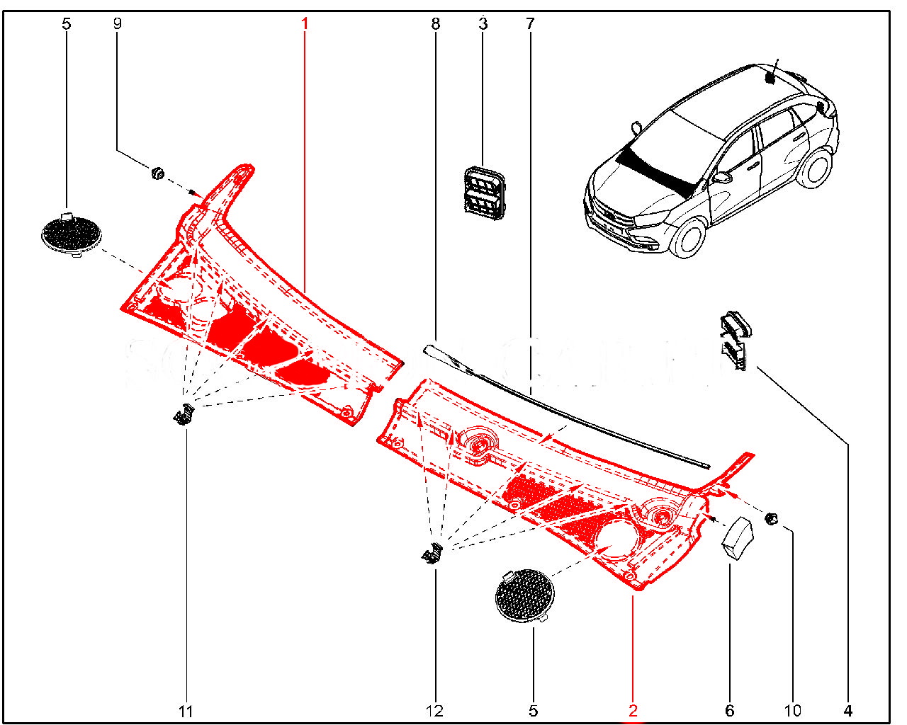 Решетка накладки рамы ветрового окна (жабо) для Лада Иксрей.