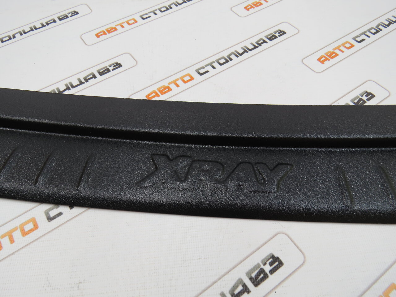 Накладка заднего бампера XRay устанавливается под уплотнитель багажника и дополнительно крепится двусторонним скотчем (он уже нанесен на накладку).
