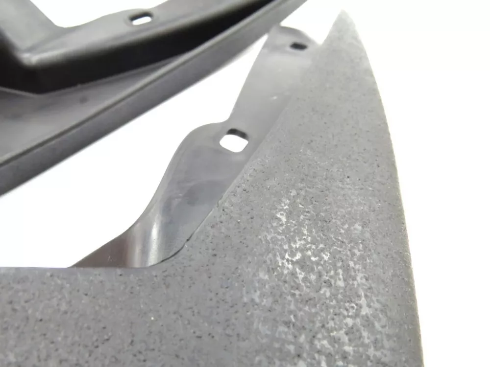 Брызговики выполнены из материала ТЭП (термоэластопласт) и имеют шагреневое покрытие, имитирующее пластик обвеса.