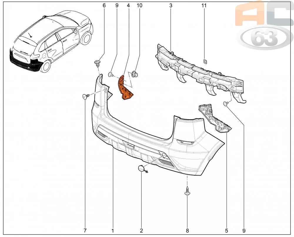 Оригинальный левый кронштейн заднего бампера для Лада Хрей (кроме Кросс-версии).