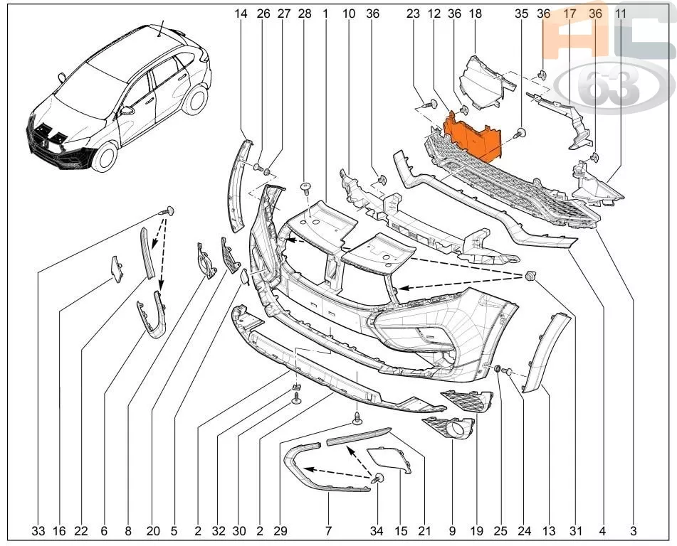 Штатная решетка переднего бампера нижняя средняя для автомобилей Лада Хрей Кросс (не подойдет для обычного XRAY).