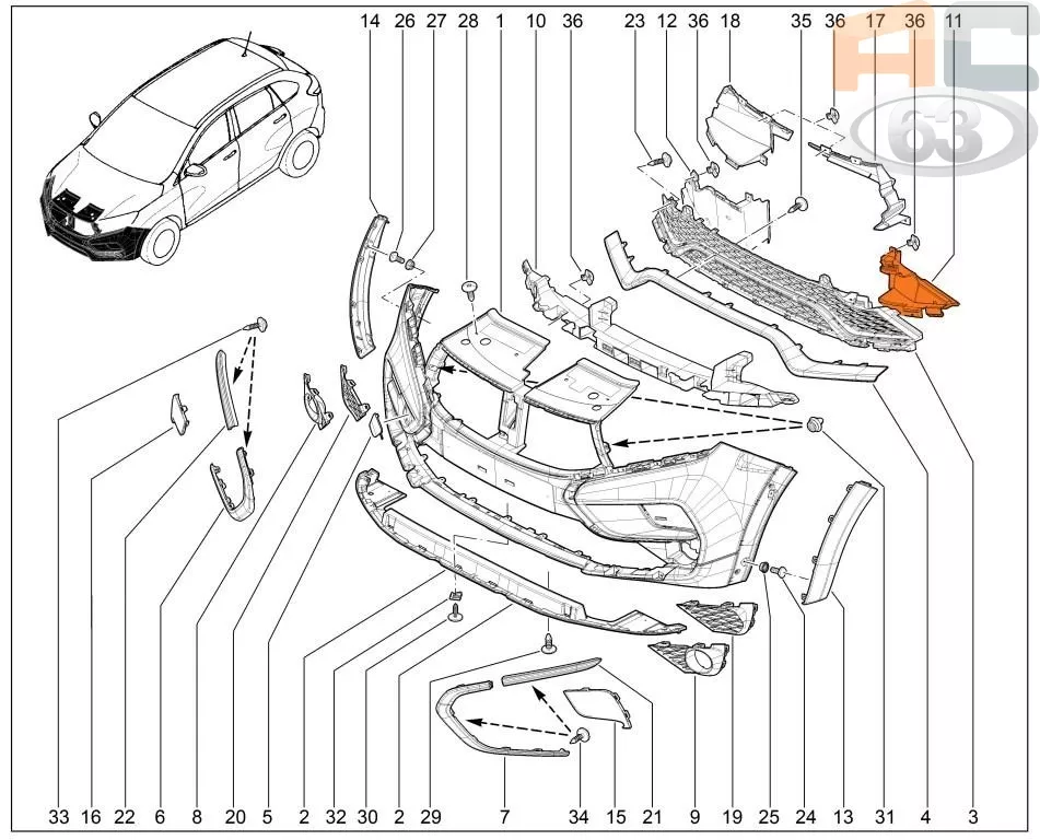 Штатная решетка переднего бампера нижняя левая для автомобилей Лада Хрей Кросс (не подойдет для обычного XRAY).