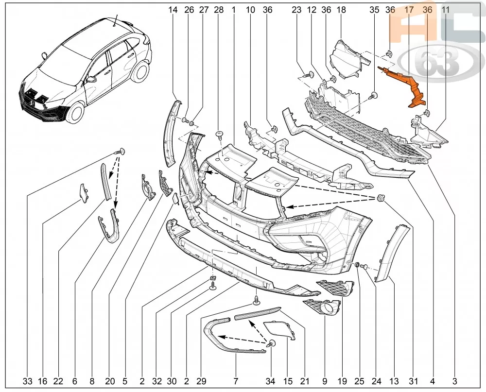 Решетка подлежит замене при повреждении штатной детали.
