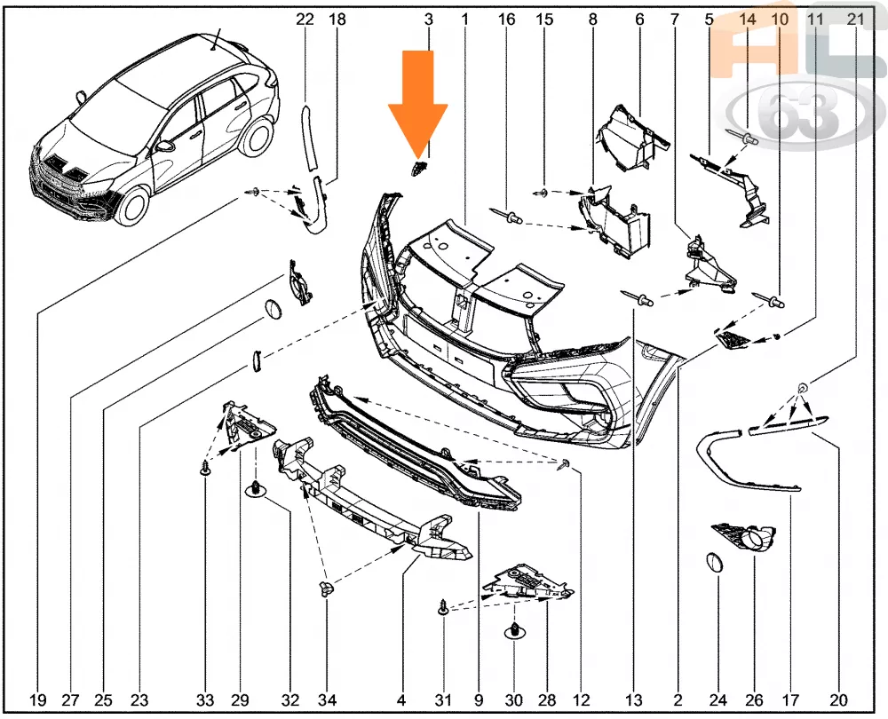 Кронштейн крепления переднего бампера правый для автомобилей Лада Хрей.