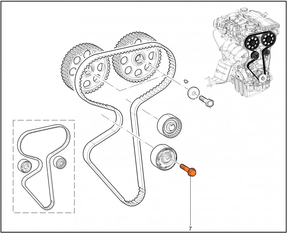 Оригинальный болт крепления натяжного ролика ГРМ М10х55х1,25.