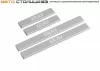 Накладки на пороги AutoMAX из нержавеющей стали разрабатываются индивидуально для каждой модели автомобиля. Обеспечивают не только защиту порогов от нежелательных сколов и царапин, но и являются элементом тюнинга. Использование высокотехнологичного оборудования позволяет в точности повторить геометрию порогов автомобиля. На накладки нанесено название модели автомобиля методом лазерной гравировки.