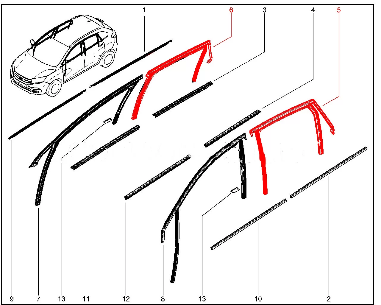 Штатный уплотнитель опускного стекла задней двери верхний для Лада Иксрей.