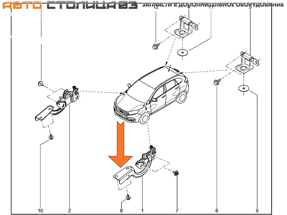Оригинальная левая петля капота (со стороны водителя) для автомобилей Лада Хрей (в том числе Кросс).