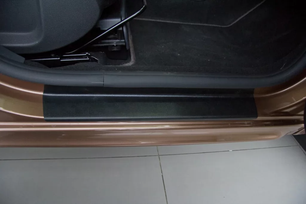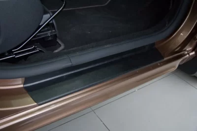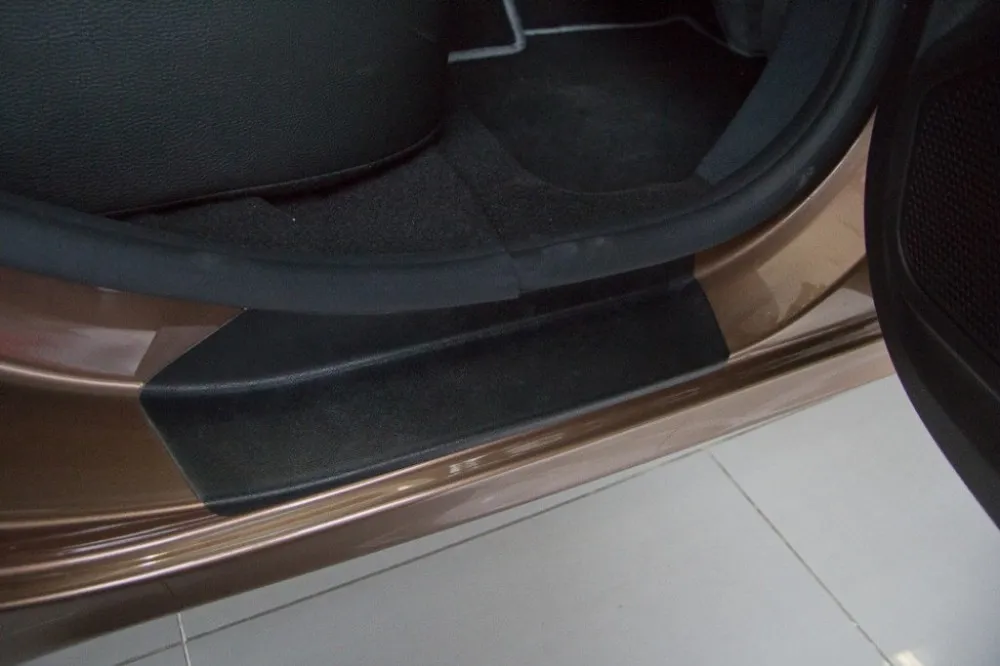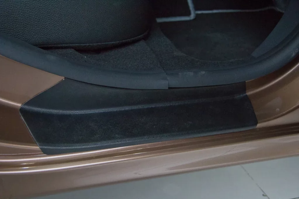 Защита проёма дверей от сколов и царапин в момент транспортировки пассажиров. После установки накладок владелец автомобиля будет спокоен, что никто не сможет повредить туфлями лакокрасочное покрытие автомобиля, а животные не испортят кузов когтями на лапах.
