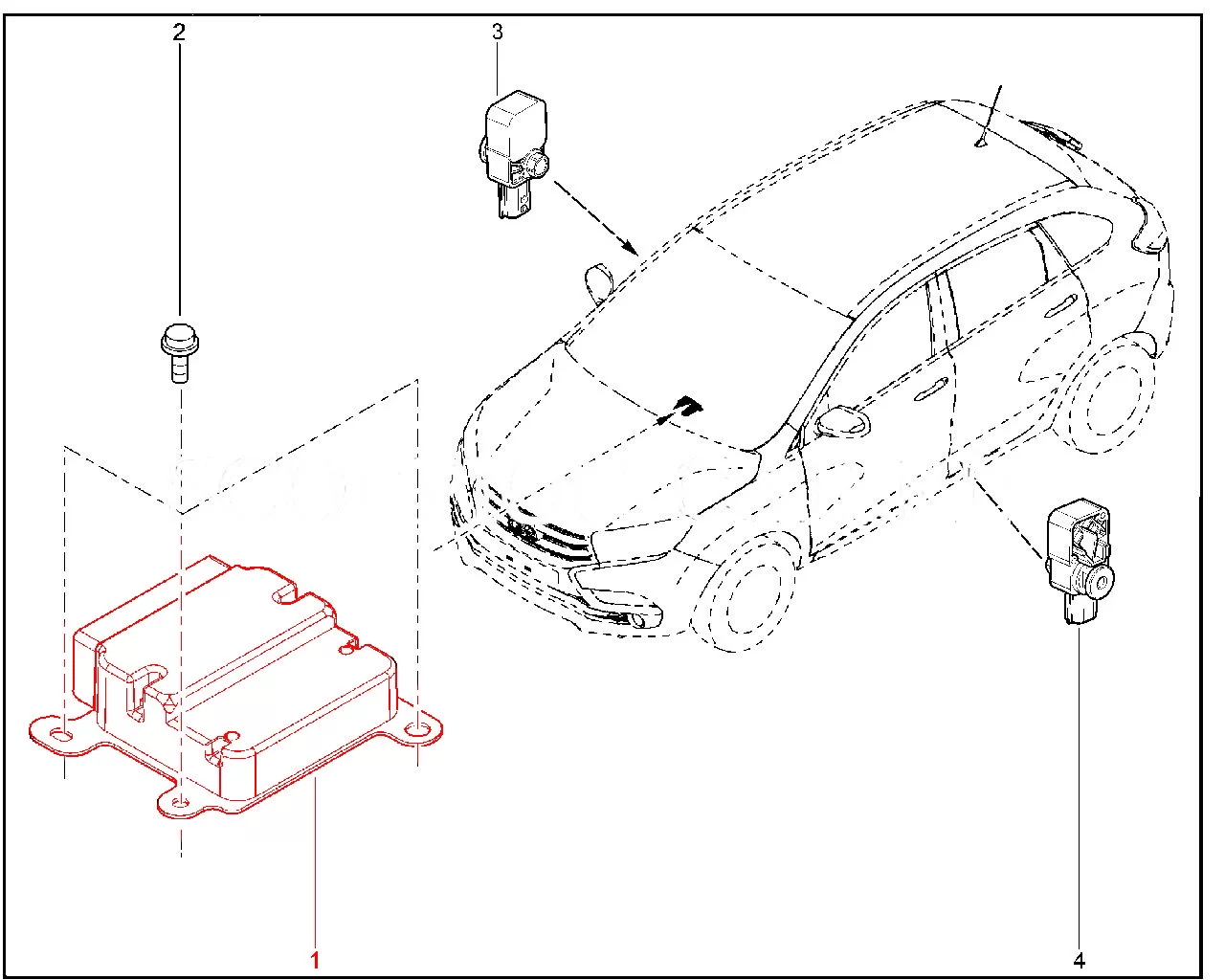 Штатный блок управления системы надувных подушек безопасности для Лада Иксрей.