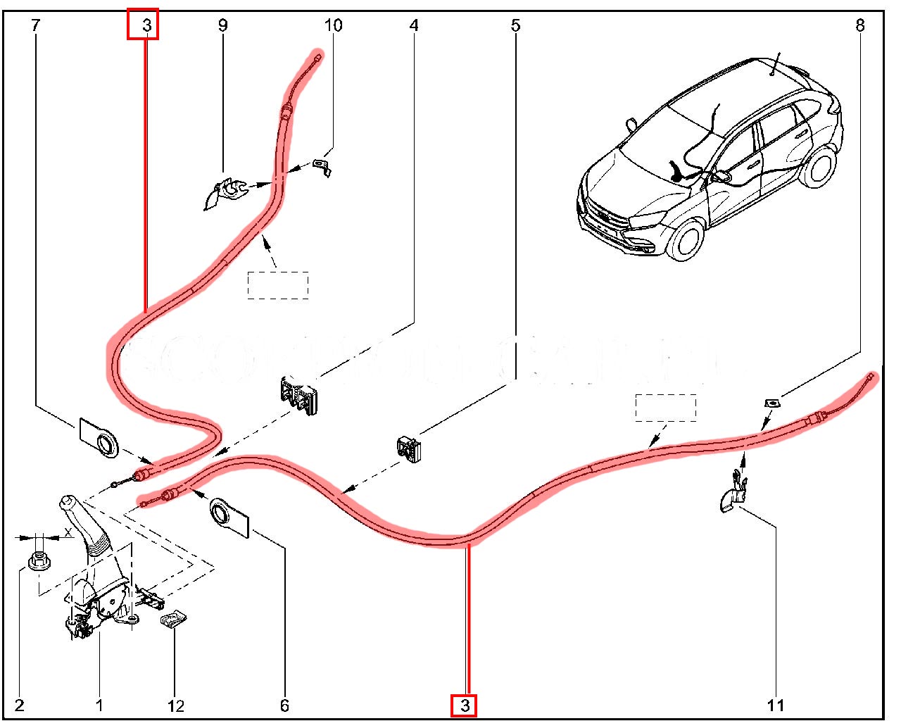 Трос ручного привода барабанного заднего тормоза для Лада Иксрей.