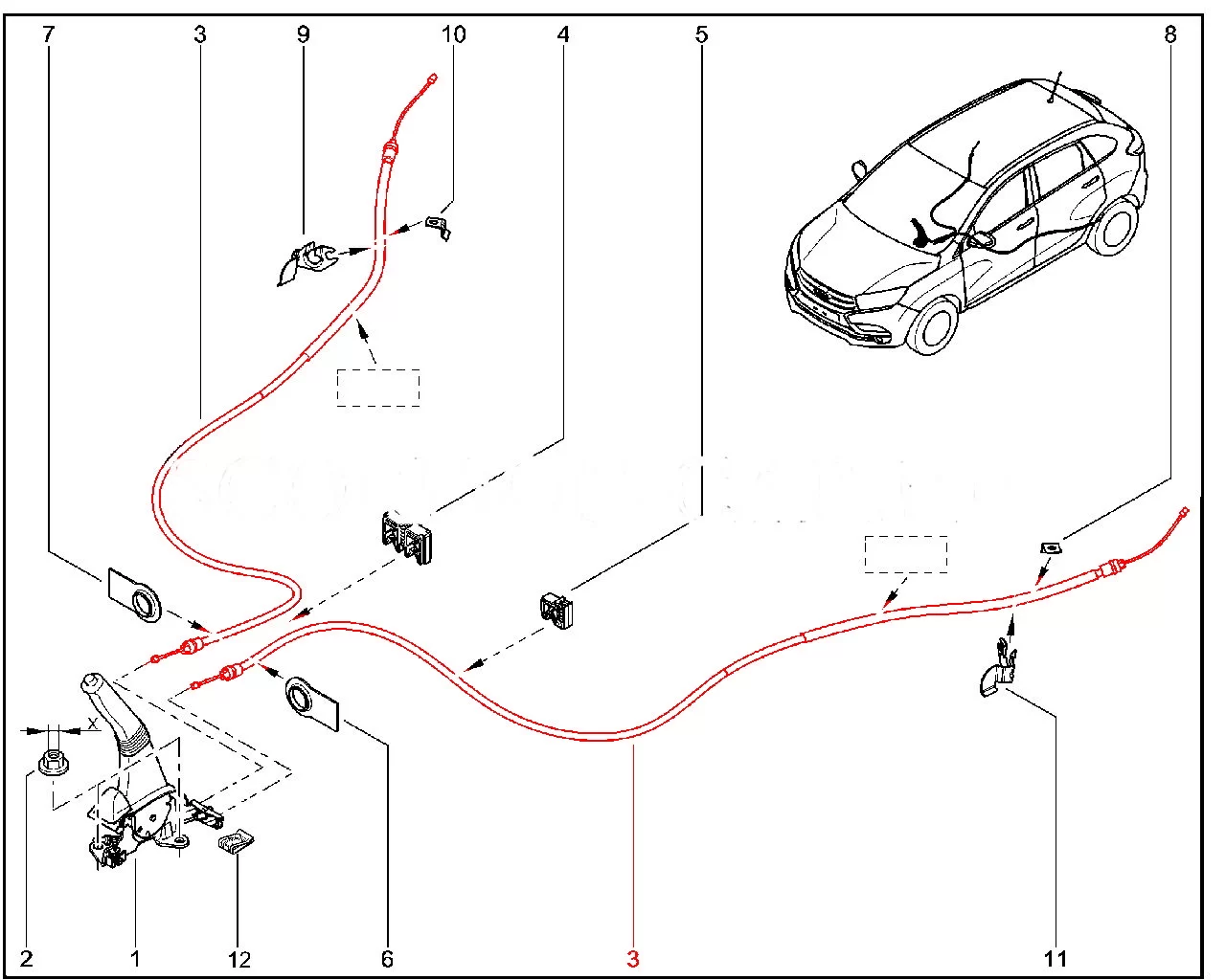 Штатный трос ручного привода заднего тормоза (дисковые) для Лада Иксрей.