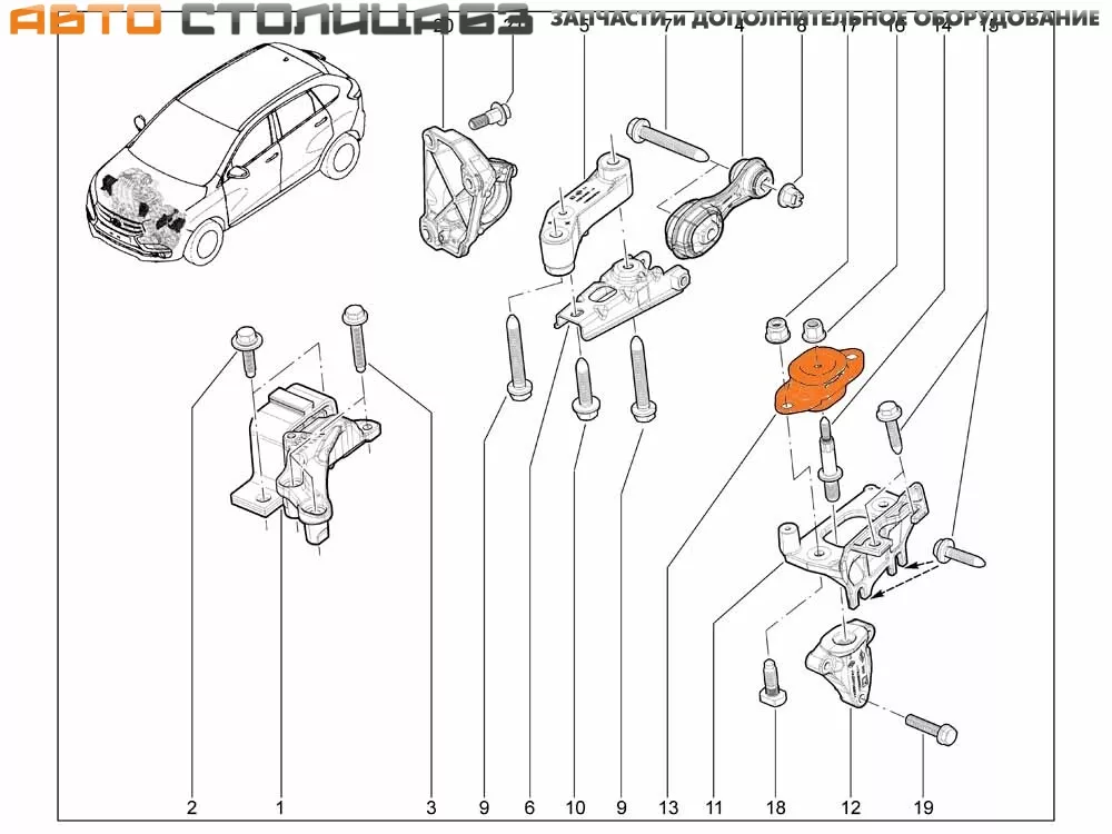 Оригинальная заводская левая опора двигателя для автомобилей Лада Хрей с двигателем Renault H4m (HR16) и вариатором.
