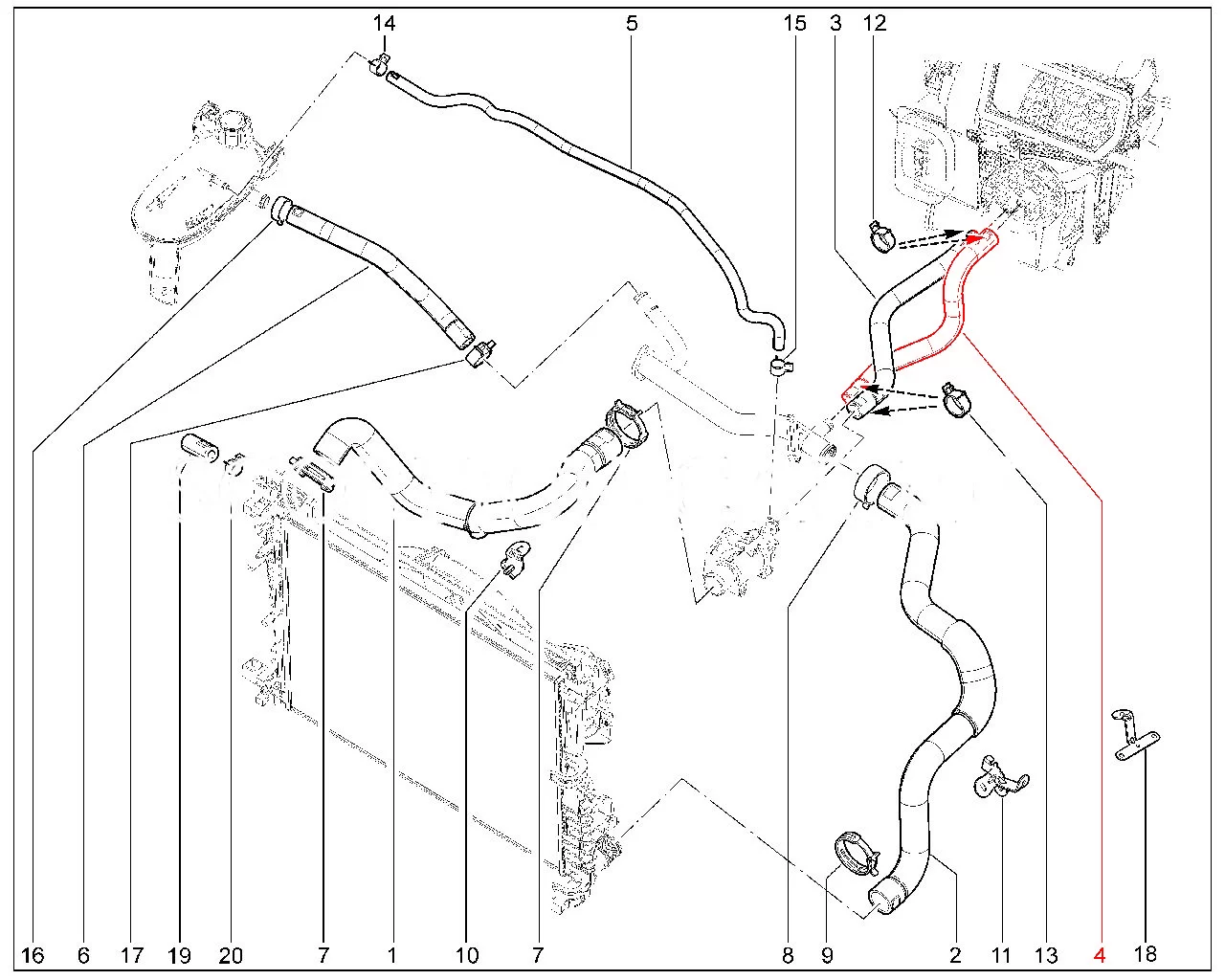 Штатный шланг отводящий отопителя для Лада Иксрей с двигателем ВАЗ.