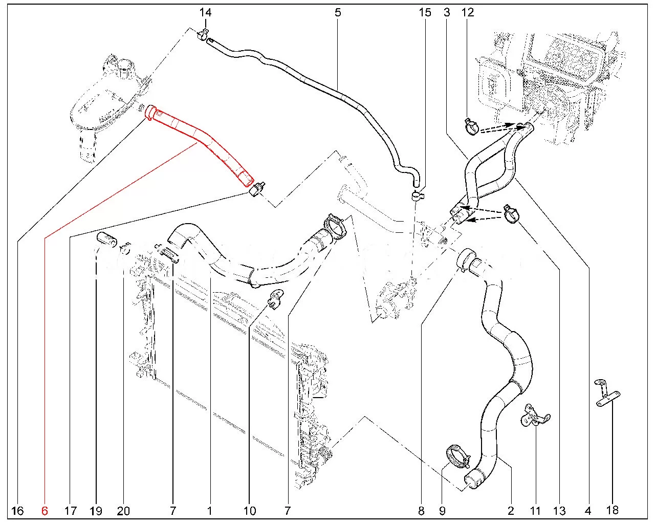 Штатный шланг заправочный системы охлаждения (ДВС ВАЗ) для Лада Ларгус и Иксрей.