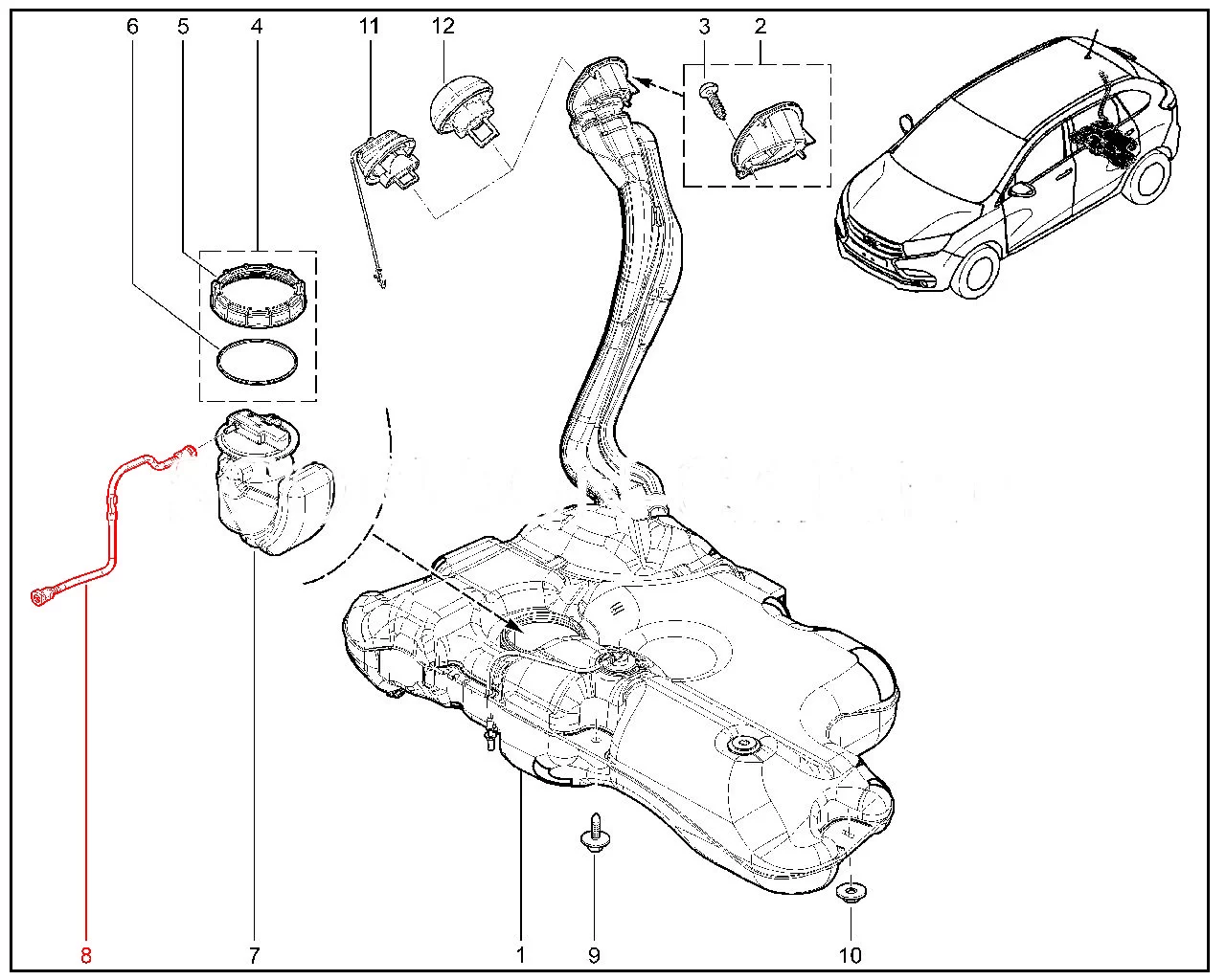 Трубка подачи топлива от бензобака к двигателю для Лада Иксрей.