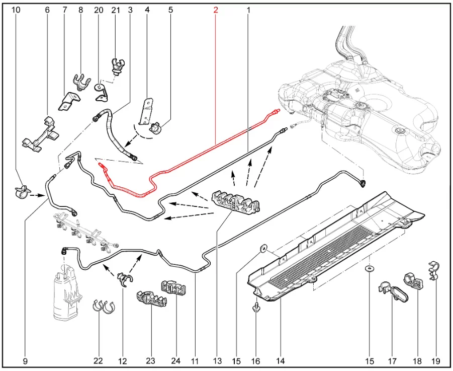 Штатная трубка топливная в сборе двигателя ВАЗ 21179 для Лада Иксрей.