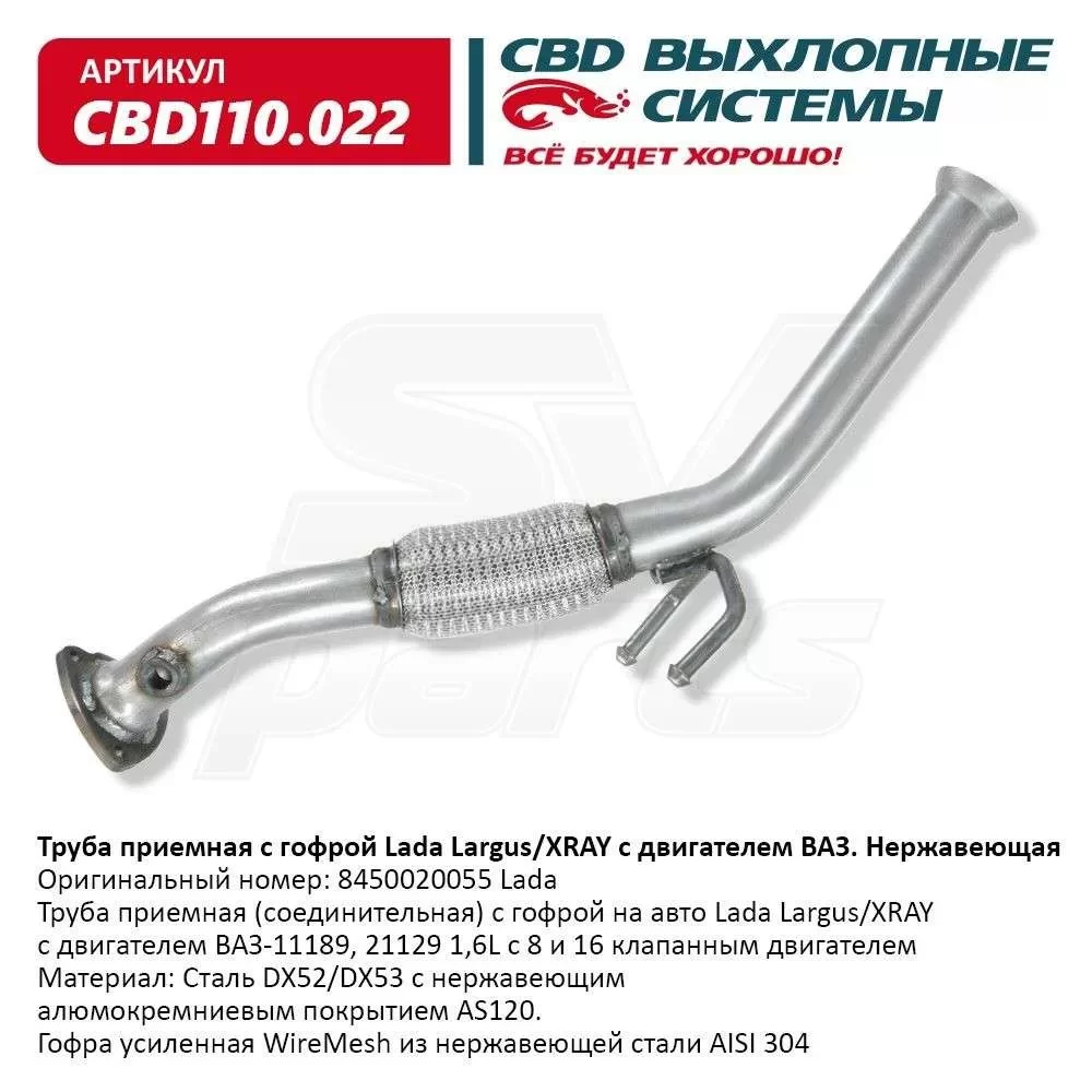Труба приемная с гофрой нержавеющая сталь CBD110.022 для Лада Ларгус и Иксрей с двигателями ВАЗ.